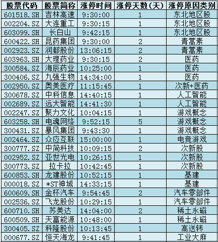 1.东北振兴:习总将对朝鲜进行国事访问+辽宁全面推进五大区域发展战略,吉林高速、大连重工、长白山涨停。