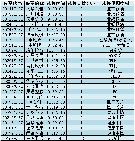 1.业绩预增:中报行情火爆来袭,南华仪器、冰川网络、天瑞仪器、宝色股份、广生堂、维宏股份、卓胜微、电科院涨停。