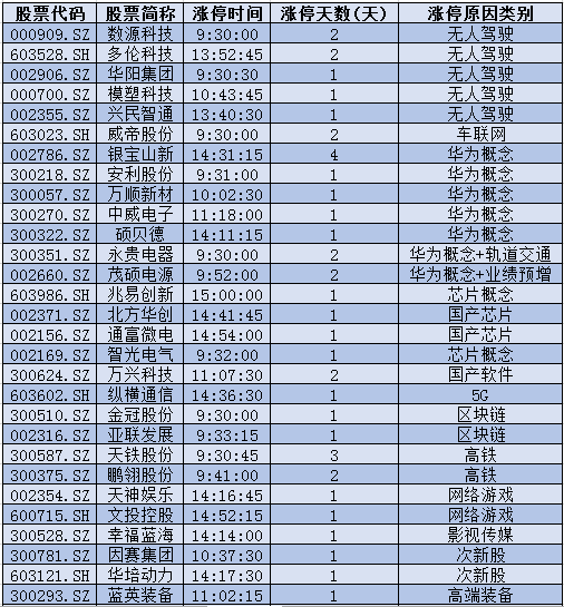 1.无人驾驶:国家智能网联汽车(武汉)测试示范区正式揭牌+《交通强国建设纲要》印发,数源科技、多伦科技、华阳集团、模塑科技、兴民智通、威帝股份涨停。
