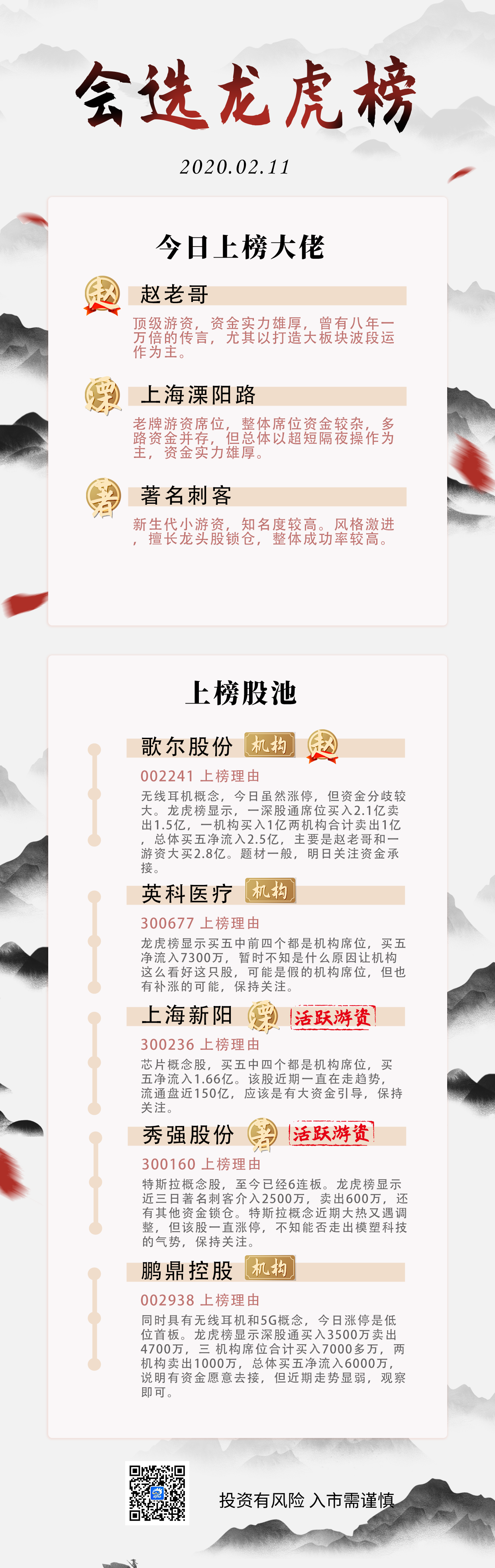 赵老哥:买入1.7亿歌尔股份(赵老哥跟随机构大仓位上了消费电子的趋势标的,一般来讲这种标的能够涨停都是有机构买入,所以赵老哥就是混机构车的节奏)。