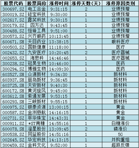1.业绩预增:中报行情火爆来袭,电工合金、硅宝科技、露笑科技、四方达、恒锋工具、兴齐眼药涨停。