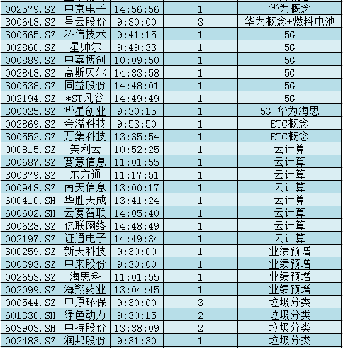 2.华为概念:美国计划放开对华为的管制,电连技术、联得装备、科泰电源、光弘科技、欧菲光、星星科技、城地股份、长盈精密、工业富联等个股涨停。