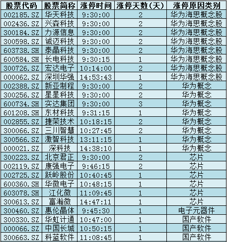 1.华为概念+芯片:无惧打压,备胎芯片一夜转“正”,华天科技、兴森科技、力源信息、诚迈科技、长电科技、新亚制程等个股涨停
