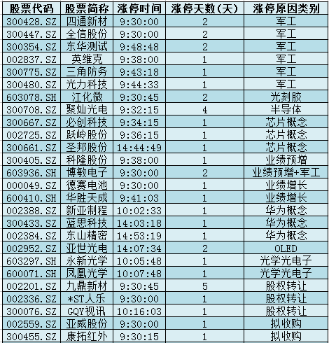 1.军工:《新时代的中国国防》白皮书正式发表,四通新材、东华测试、全信股份、英维克、三角防务、光力科技涨停。