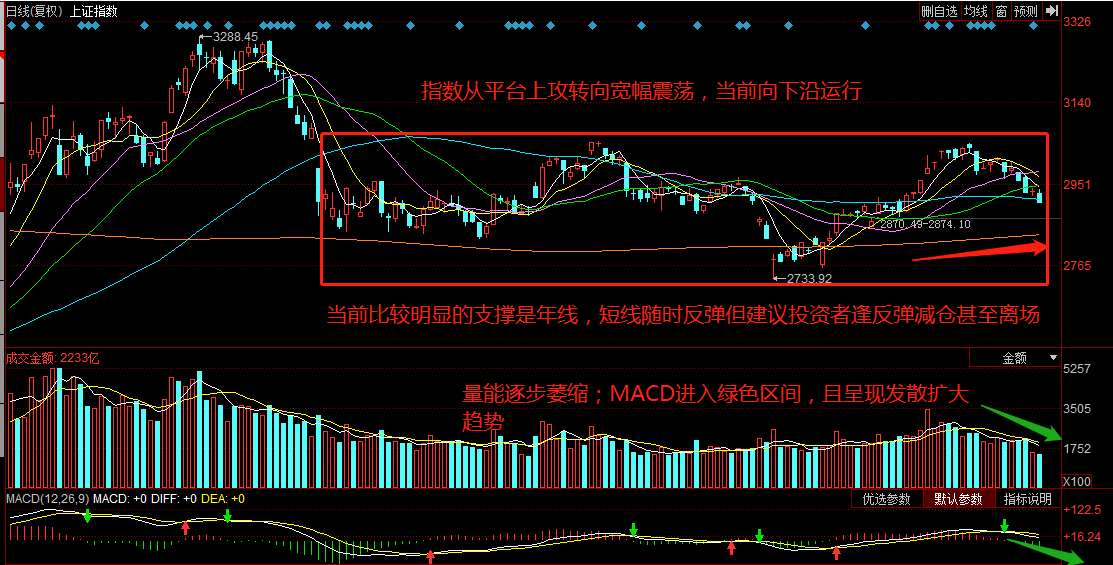9月25日上证与创业板双双跌破20日均线,涨停解码便提示用户风向转换,20日均线是中期走势的生命线,如果跌破格局完全改变了。未来的走势将如何演变?短期看是宽幅震荡,上证指数构建了2733到3050左右的宽幅震荡区间,当前的走势向2733低点运行,目前可以看到比较强的支撑位是年线的支撑,当然短期随时可能有反抽,但都建议看作暂时离场的时机。至于创业板,近期表现强于主板,后期是否补跌未可知,但如果延续强势的话,应该在60日均线处企稳。