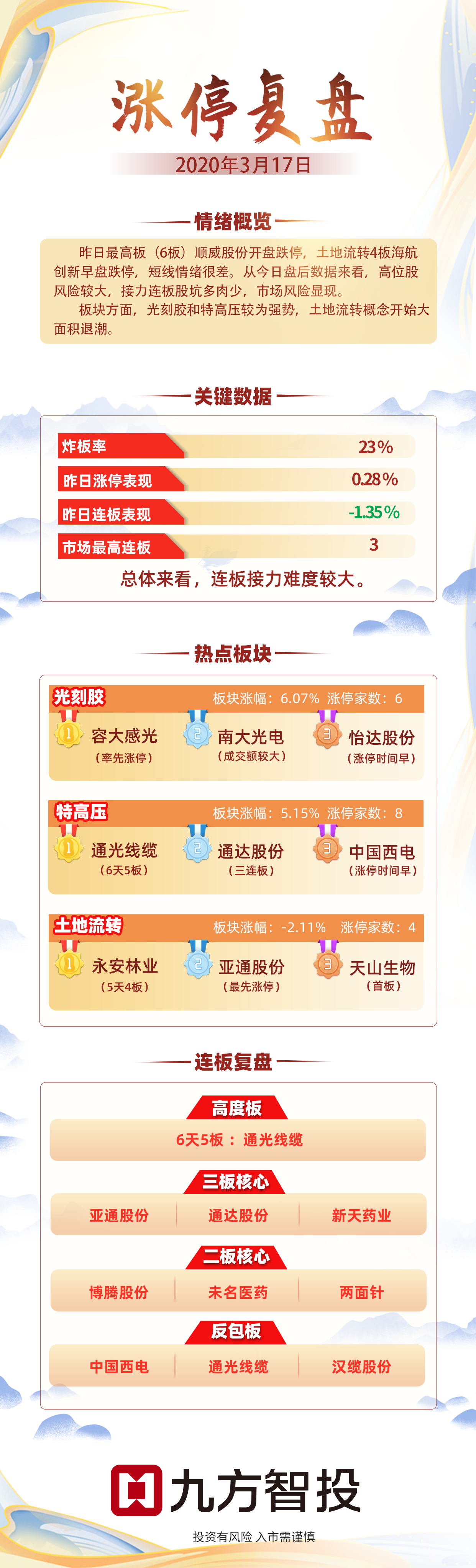 涨停复盘:高位股杀跌严重 光刻胶板块异军突起