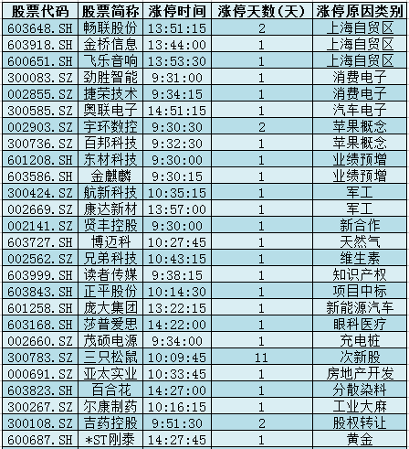 1.上海自贸区:总理考察上海自贸试验区新片区 ,畅联股份、金桥信息、飞乐音响涨停。