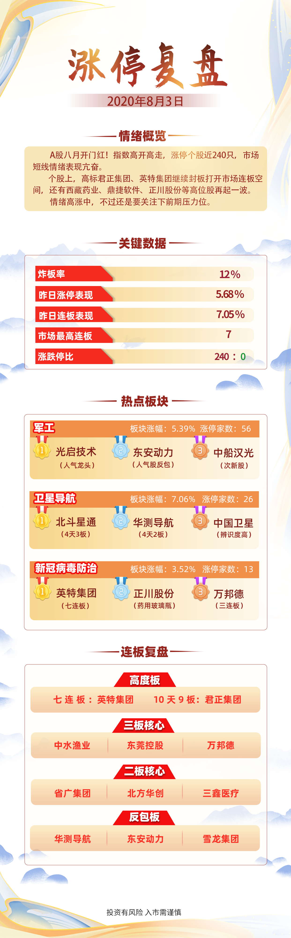 涨停复盘:8月开门红!军工板块掀涨停潮