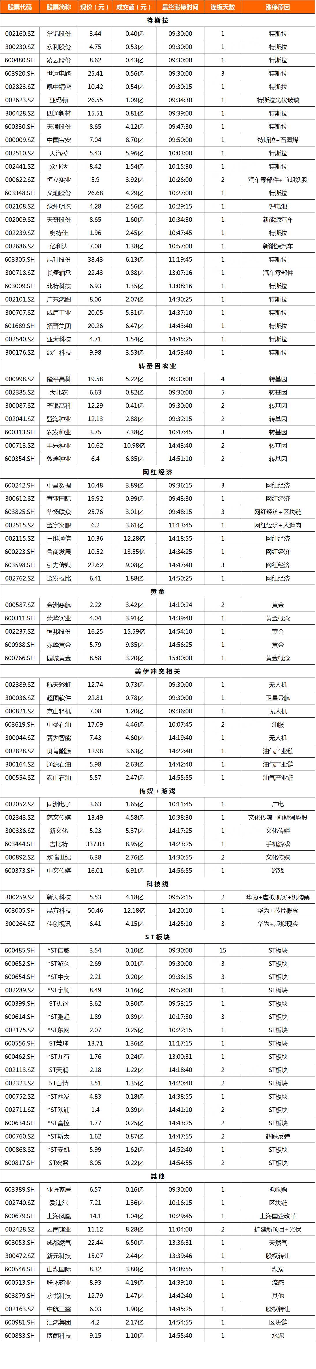 指数早盘单边走强,午后回落,沪指3100点得而复失,创业板指涨幅收窄。转基因板块全天维持强势,特斯拉概念继续涨停潮,油气、黄金、华为产业链等表现活跃,个股维持涨多跌少,涨停达90余家,成交量有所增加,市场氛围尚可。