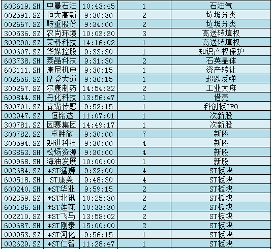 4.石油气:两部委提出加快储气设施建设,中天能源、中曼石油涨停。