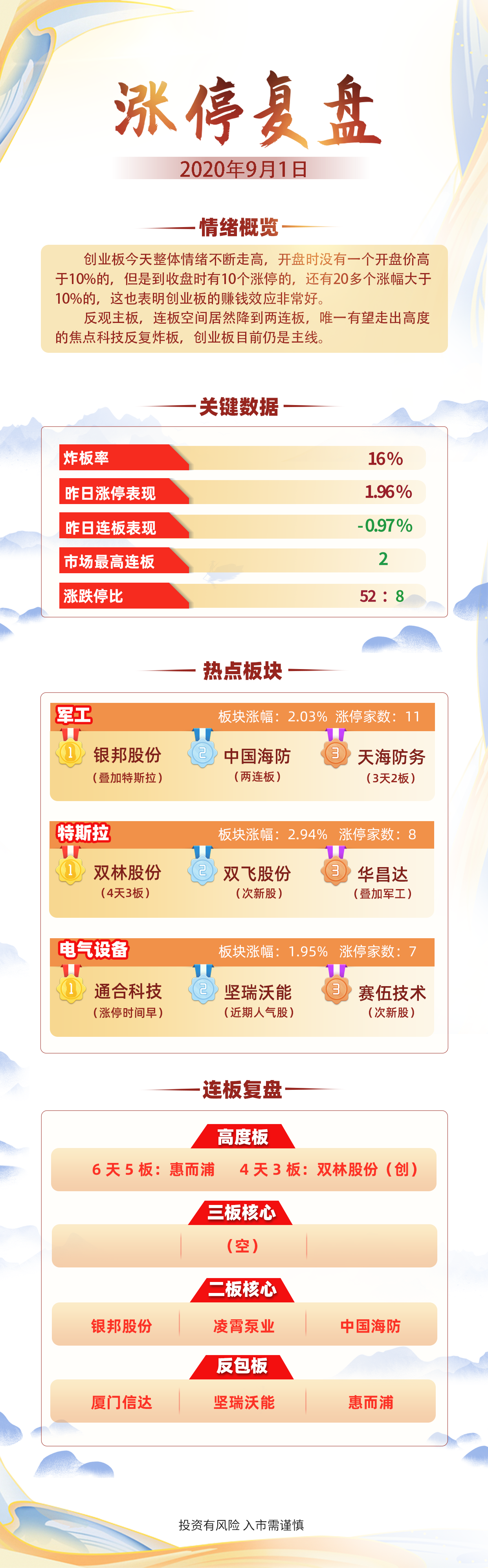 涨停复盘:9月开门红!惠而浦6天5板