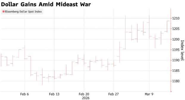 据道富银行称,由于中东冲突推动了对避险资产的需求,机构投资者正在以近两年来最强劲的水平买入美元。自2月28日伊朗冲突爆发以来,美元现货指数已上涨近1.8%,原因是投资者涌入美元,且油价上涨也对美元提供了支撑。