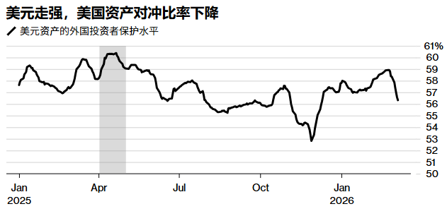 美元在冲突期间的反弹,是在经历了八年来最糟糕的一年之后出现的。受特朗普总统激进贸易政策的影响,美元2025年下跌超过8%,迫使投资者将部分资金转移到美国境外,以对冲美元进一步走弱的风险。Ferridge表示,去年4月,在美国重大关税公告发布之际,投资者增加了此类对冲操作,但随着美元开始反弹,对冲需求有所缓解。