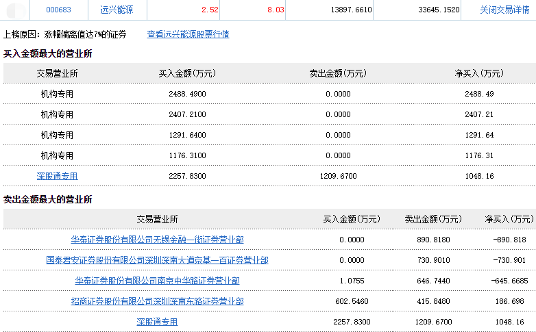 龙虎榜:4机构携手深股通狂买远兴能源!