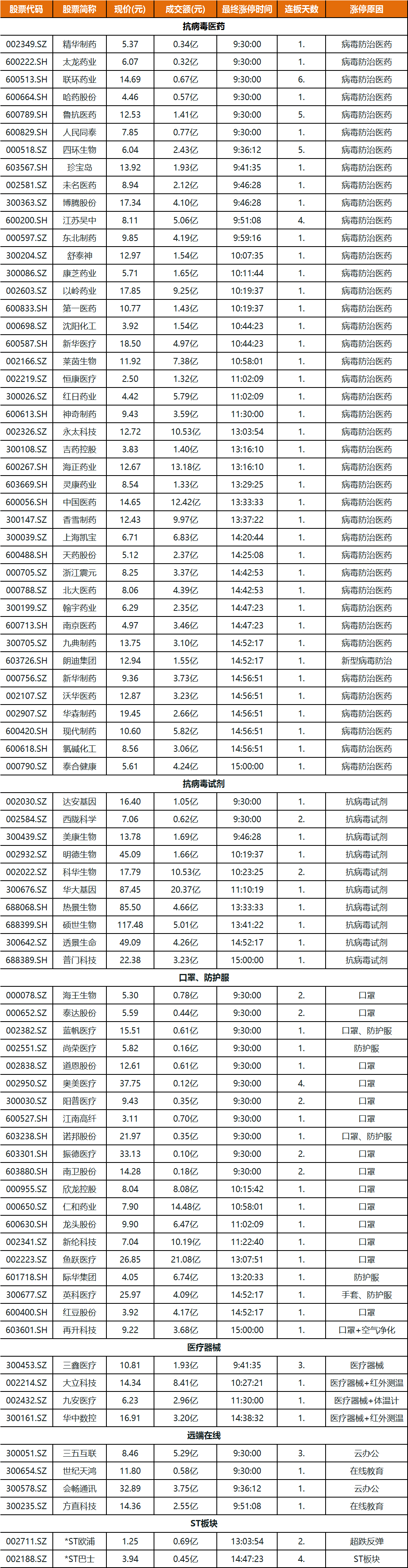 涨停复盘:两市涨停80余家 抗病毒概念股掀涨停潮