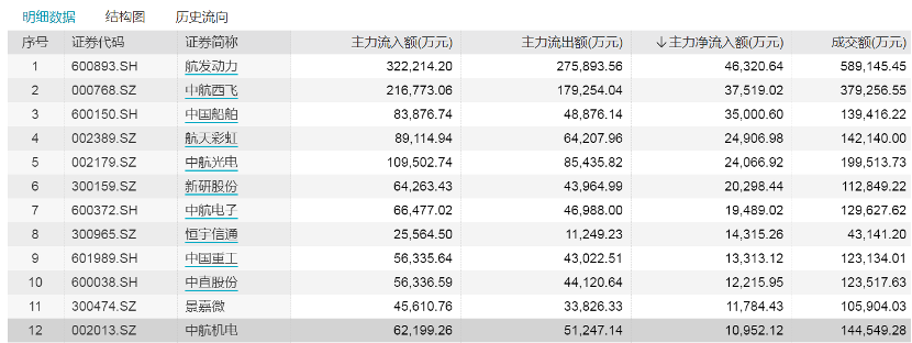 国防军工板块内,有12只个股主力资金净流入超1亿元,其中航发动力、中航西飞、中国船舶主力资金净流入超过3亿元。