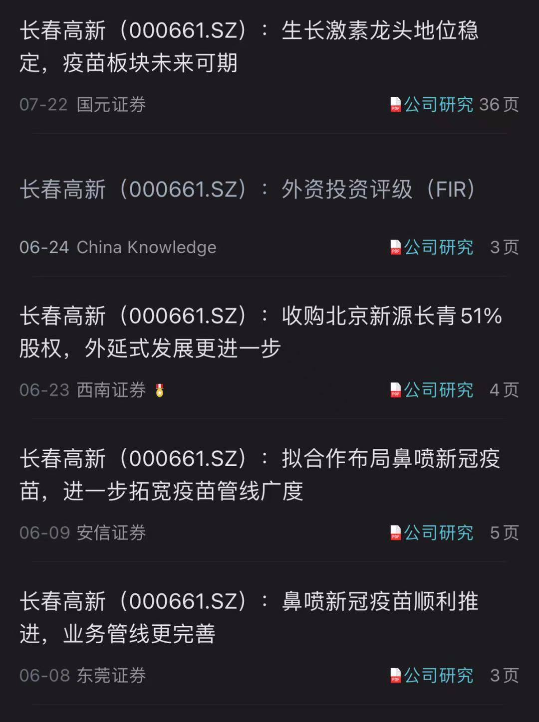 6月以来,有4家券商发布长春高新的研报,均给予买入或推荐评级。