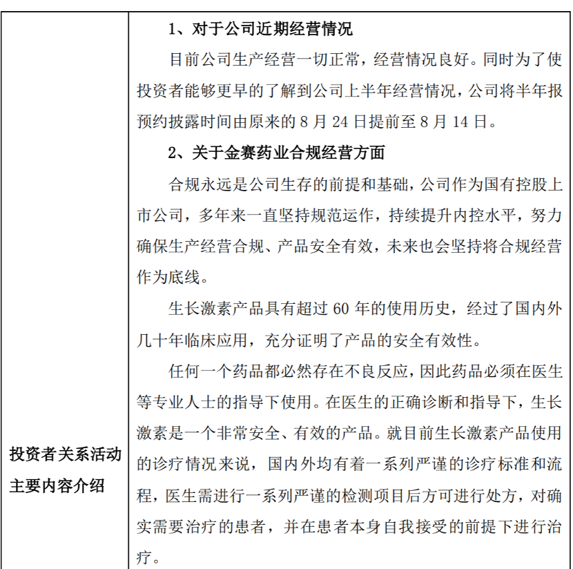 同时,长春高新召开电话及网络会议,并披露投资者关系活动记录表。长春高新表示,目前公司生产经营一切正常,并将半年报预约披露时间从8月24日提前至8月14日。