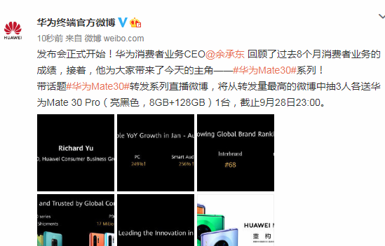 华为消费者业务CEO余承东在德国慕尼黑举办发布会上表示,截止2019年6月,华为智能手机业务销量增长26%,PC业务增长249%,智能音箱256%,可穿戴产品增长278%。细分手机业务,Mate 20系列共销售1600万台, P30半年超过1700万台。余承东确认,华为折叠屏手机将在下月中国区发货。