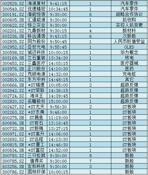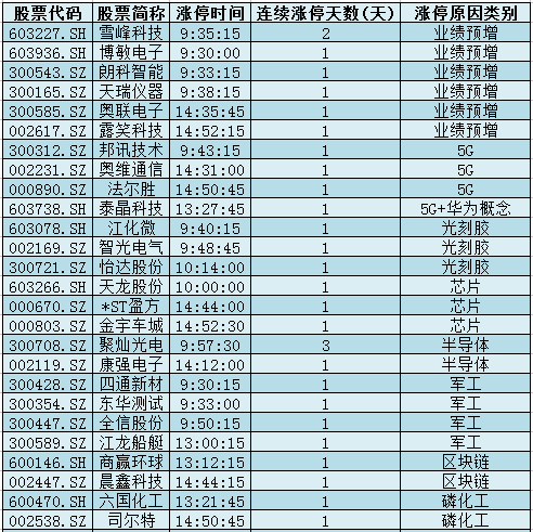 1.业绩预增:中报窗口业绩爆发股大涨,雪峰科技、博敏电子、朗科智能、天瑞仪器、露笑科技涨停。