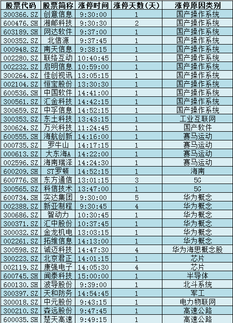 1.国产操作系统:华为自研操作系统最快今秋上市,创意信息、湘邮科技、网达软件、北信源、中国软件等个股涨停