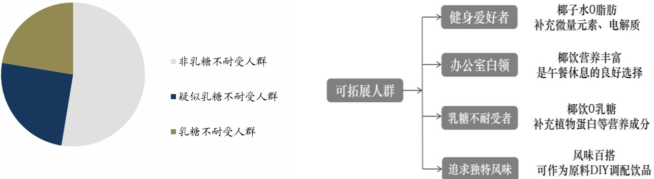 图:2016年中国乳糖不耐受人群占比情况 图:椰饮后续发展可拓展人群 |