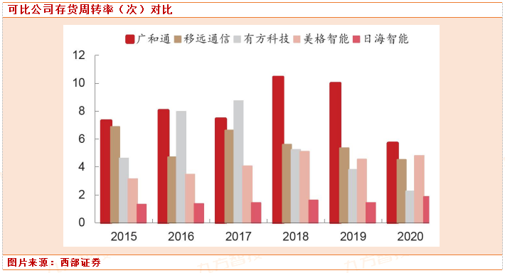 公司深耕无线通信模块领域十余年,在移动支付、移动互联网、车联网、智能电网以及安防监控等领域积累了一批国内外优质客户,形成稳定供货关系。2018-2020 年公司存货周转率持续高于可比公司。