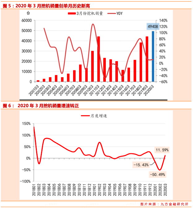 消息面上,3月份挖机销量大超预期,混凝土机挖机接连涨价。2020年3月挖机销量49408台,同比增长11.6%,大超预期,其中国内46610台,同比增长11.2%;出口2798台,同比增长17.7%。