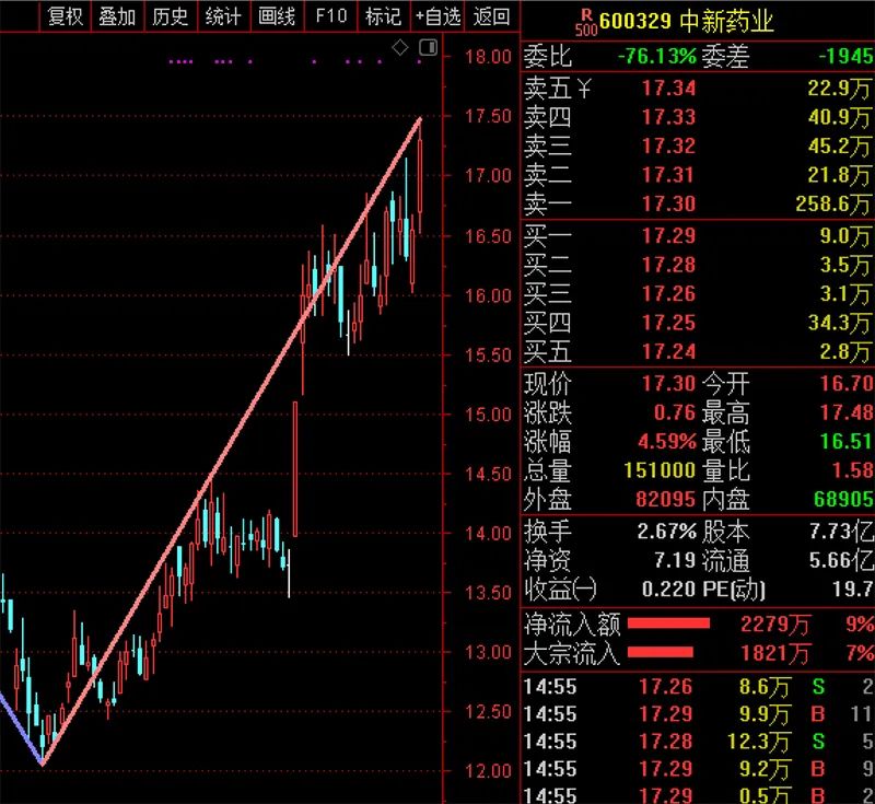 从3月19日底部至今,中新药业的股价累计涨幅近40%