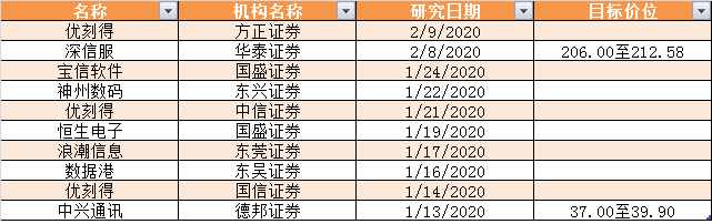 最近一个月内,机构首次关注的股票共有10只,分别为优刻得、深信服、宝信软件神州数码、优刻得、恒生电子、浪潮信息、数据港、优刻得、中兴通讯。优刻得、深信服、宝信软件均为节后首次关注。