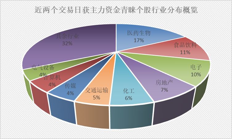 分行业来看,上述284股分布于27个申万一级行业,仅非银金融行业无一个股入围。其中,医药生物行业最受市场关注,近两日累计获主力资金净买入22.27亿元,涉及44股;食品饮料、电子行业紧随其后,净流入额分别为14.57、12.19亿元;房地产、化工、交通运输、传媒、计算机和电气设备行业吸金能力也较为乐观,净流入额均在5亿元以上。
