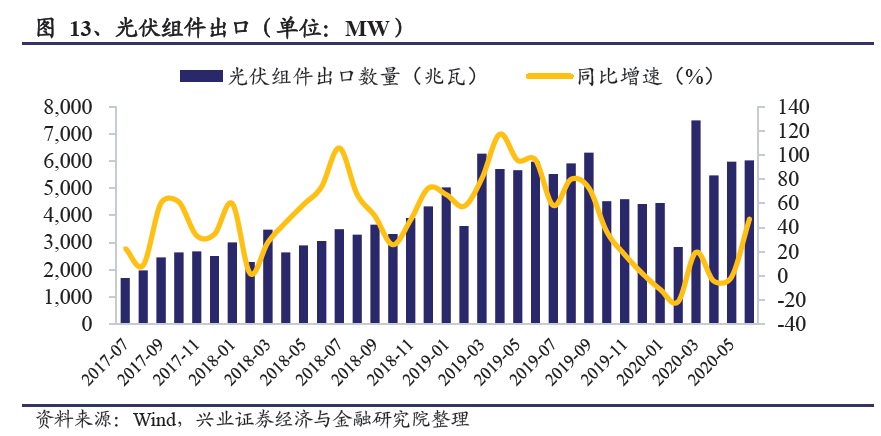 今年上半年组件出口合计32.7GW,去年为35GW,在海外受疫情影响严重的情况下,组件出货量仅仅下滑6.6%,表现非常强势。