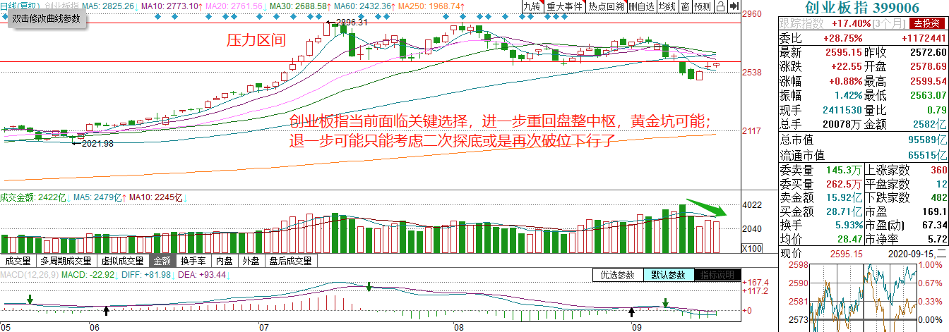 尽管创业板今天涨了0.88%,但看过昨天文章对创业板3种走势分析的股友应该清楚,今天创业板只是做了中性的选择,既没有跌破5日线反身向下否定反弹,亦没有突破关键压力位,重回上方盘整区间,所以整体悬念依然留到了明天。