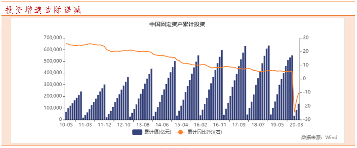 三大投资持续回升,但后劲不足。根据国家统计局的分类,固定资产投资在统计上被分为基建投资、房地产投资以及制造业投资。根据最新数据,而1-4月的制造业投资增长-18.8%,降幅收窄6.4个百分点。其中民间投资下降13.3%,降幅收窄5.5%。可见随着央行流动性的释放,企业融资难的问题得到一定解决。但由于4月PPI降幅持续扩大,由3月的-1.5%回落至-3.1%,企业盈利前景不稳,实际利率水平提高,4月制造业投资降幅依然较深。1-4月的房地产开发投资增速为-3.3%,较前值继续回升,但改善的边际幅度大幅降低。央行在一季度货币政策报告中再次明确了“房住不炒”,部分城市房地产松动政策“一日游”再次对房地产投资形成了抑制。同样,1-4月基础设施投资同比增速-11.8%,比前期下降幅度收窄7.9个百分点,这一幅度同样低于前值的10.6个百分点,说明基建投资的恢复边际改善幅度也有所减弱。市场可能还在观望,预计两会会对此前提及的“新基建”有进一步明确定义,之后随着专项债和特别国债的获批发行,基建投资有望在二季度迎来井喷。