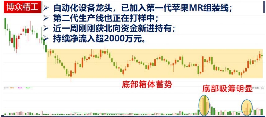 自动化设备龙头,已加入第一代苹果MR组装线;第二代生产线也正在打样中;近一周刚刚获北向资金新进持有;持续净流入超2000万元。
