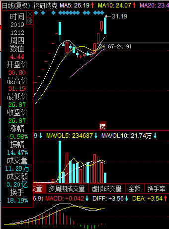 另一只近日连续3个涨停板的次新股钢研纳克,今日早盘高开3.18%,但也在巨量抛盘打压下,不到3分钟就直线跌停。截至收盘,成交3.2亿元,换手率18.19,跌停板上仍有近8万手封单。