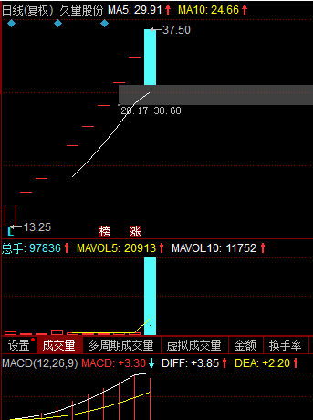 开板即是天地板今日早盘,新股久量股份开盘涨停,这已是久量股份以来第10个涨停(含首日44%涨停),在近期新股中算表现较好的个股之一。