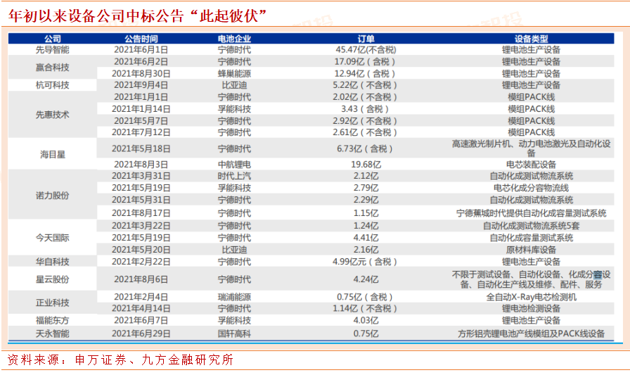 随着锂离子电池市场不断扩大,市场对锂电池的性能要求越来越高,锂离子电池生产设备变得愈发重要。今年以来,锂电设备上市公司中标公告层出不穷,且呈现出百花齐放态势。