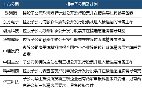 以下是近期披露子公司计划公开发行股票并在精选层挂牌公司详情: