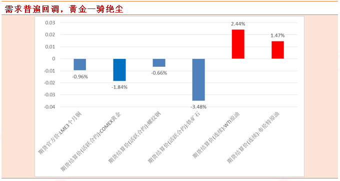 点评:风险偏好上升,投资者获利回吐。上周,国际金价高位大幅回调,COMEX黄金价格最低处较前期高点下跌逾200美元,而后反弹至1950美元/盎司左右。此轮金价下跌主要有以下几方面原因:一是前期历史性大涨后,部分投机资本预期美元指数会低位反弹而获利离场。二是美国总统特朗普提出包括减税在内的新一轮财政刺激法案,债券收益率上升影响投资者风险偏好上升,对黄金价格产生较大的压制作用;三是与全球疫情防控相关的风险偏好发生变化,俄罗斯总统普京宣布俄罗斯注册了全球首款新冠疫苗,消息刺激全球市场风险情绪高涨。