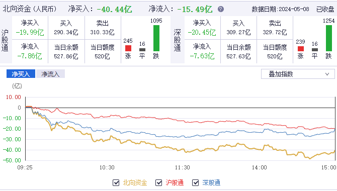 盘面上,细胞免疫治疗、合成生物、猪肉、贵金属等板块涨幅居前,AI语料、铜缆高速连接、手机游戏、华为昇腾等板块跌幅居前。同时,沪深两市总成交额8644亿,较上个交易日缩量1043亿。而北上资金,则在今日净卖出40.44亿,流出幅度有所加大。