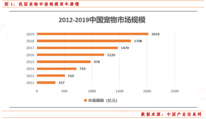 目前,由于我国居民生活方式和观念的转变,很多人开始养宠物,而狗是最主要的之一。很多家庭面临子女不在身旁以及安全考虑,将宠物作为家庭的陪伴成员的现象和普遍。2012年至今,我国宠物行业的市场规模不断扩大,从337亿元增长至2019年的2024亿元,年均增长量近30%。截止2019年,全国城镇宠物犬达到5503万只,较2018年增长8.2%,市场规模达到1244亿元,较去年增长17.8%;全国城镇宠物猫数量达到4412万只,较去年增长8.6%,市场规模则突破780亿元,年增长为19.6%。从宠物市场规模上看,猫犬的养宠比例占宠物饲养人群的75%以上,是绝对的主流宠物类型。这对于当前以猫犬及饲养者为主要接种对象的人用、兽用疫苗市场而言无疑是一大利好。根据安信证券测算,中国市场宠物行业市场规模不断扩大,2019年增长至2024亿元,宠物猫、犬数量年均增长10%,推动人用狂犬疫苗需求攀升。