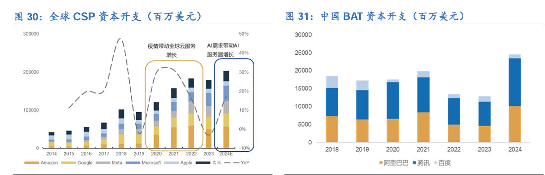 图:全球互联网大厂资本开支情况 数据来源:国元证券 |