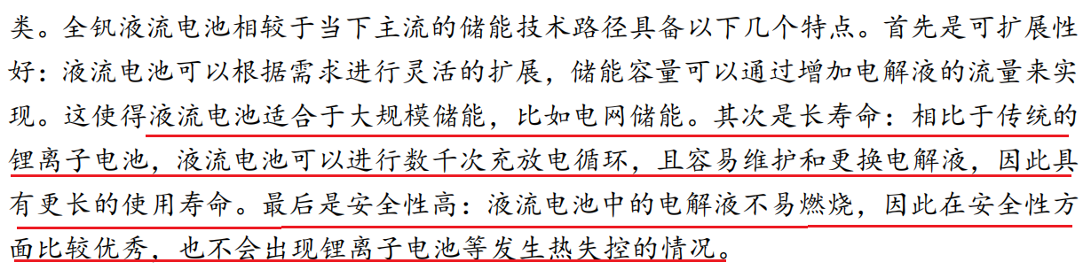 与传统的锂离子电池不同,全钒液流电池的正负极都是液态的,从而避免了传统电池中因为固态材料的使用而带来的热失控和安全隐患。另外,全钒液流电池可以通过多电池串联和并联实现更大容量的储能,为未来可再生能源的发展提供可靠的支持。鉴于全钒液流电池的技术特性,总体而言目前更适用于电网储能领域,但在一些对能量密度和成本等要求较高的应用中,其竞争力相对较弱。