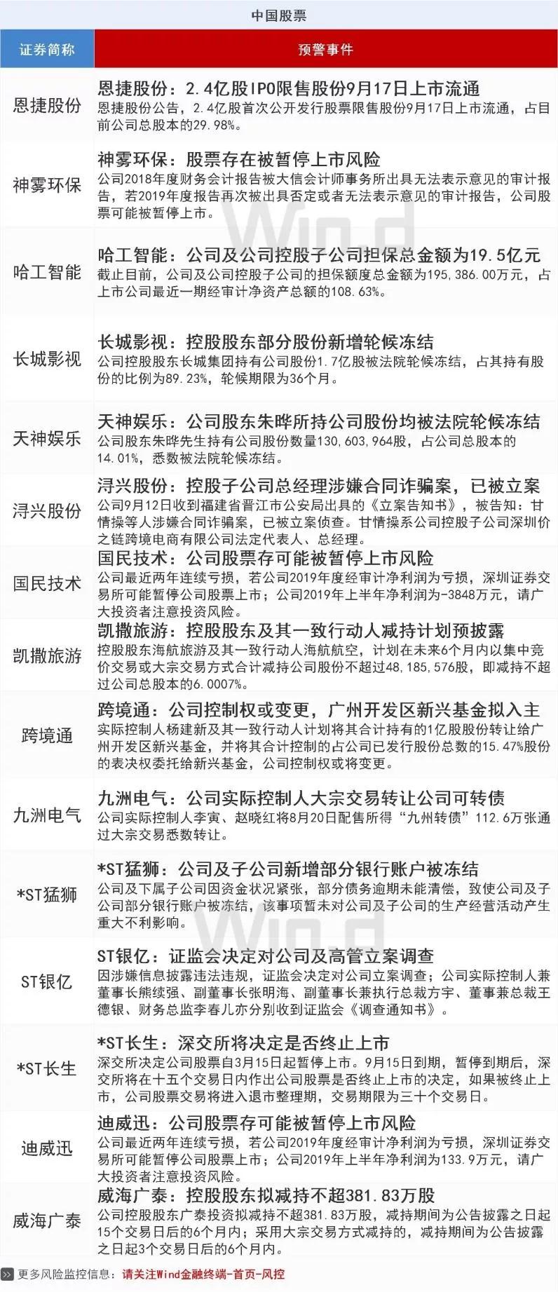 恩捷股份2.4亿股IPO限售股份明日上市;波音2020年前复飞无望!