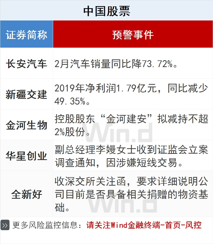 每日投资预警 | 长安汽车、新疆交建、上海华信