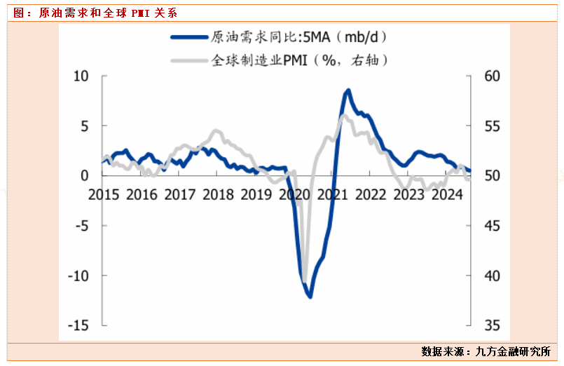 原油的需求端,主要还是和全球经济正相关,可以参考全球主要国家经济体经济数据和全球PMI数据来判断全球的经济情况,从俄乌战争以来,全球经济陷入持续低迷中,PMI也从高点持续走低,一度跌破50以下,目前全球PMI数据在50附近,也是处于震荡中,我们判断全球经济的好转,主要还是要看到俄乌战争,中东战争的结束,才有望逐步修复。