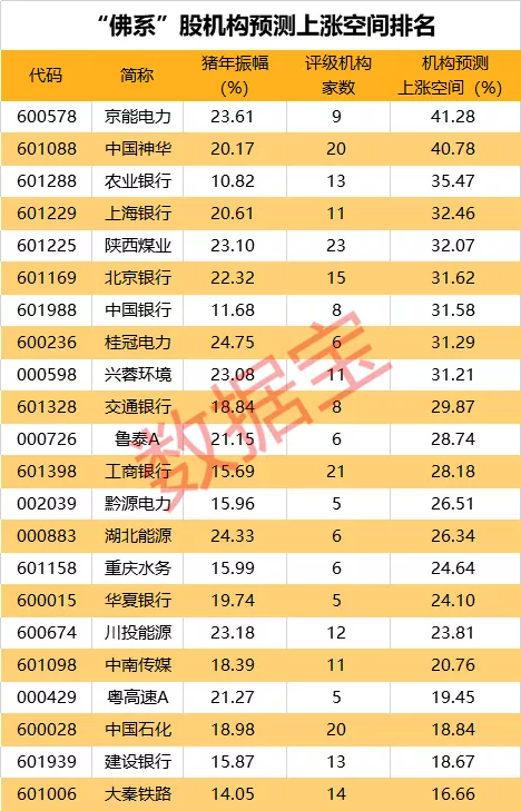具体来看,京能电力、中国神华机构一致预测上涨空间均超40%,农业银行、上海银行、陕西煤业等7股距离机构目标价上涨空间超30%。