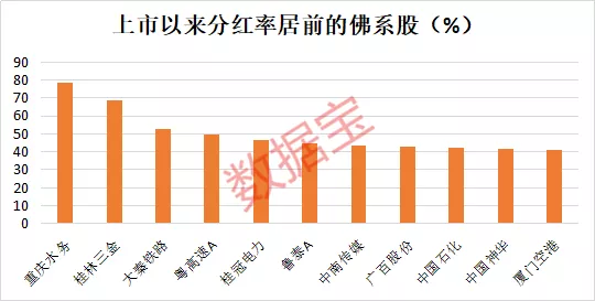 将时间范围拉长看,重庆水务、桂林三金、大秦铁路上市以来分红率均超50%,分别为78.52%、68.37%和52.87%;粤高速A、桂冠电力、鲁泰A等8股上市以来分红率均在40%以上。也就是说,上述11家公司将上市以来净利润的40%以上用来回报投资者。