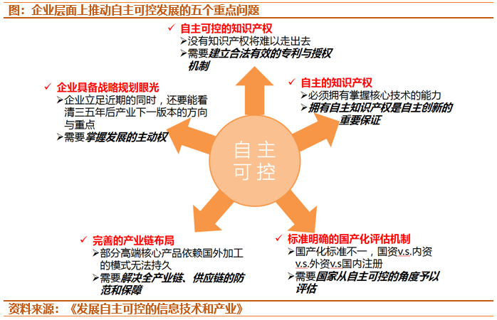 然而,与一般市场上炒作的概念不同,自主可控实际上不仅包含了国产替代,也是一项长期的国家战略。